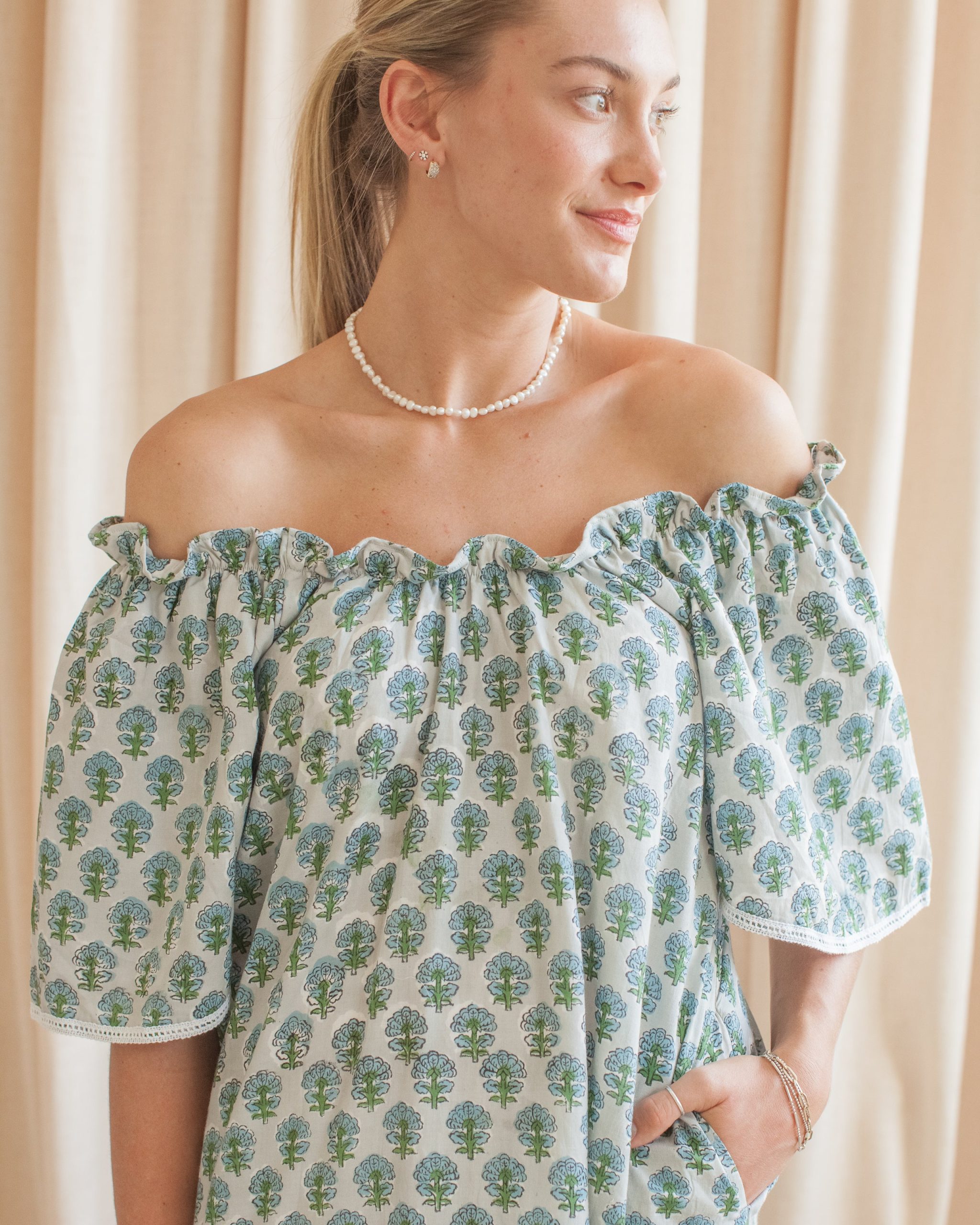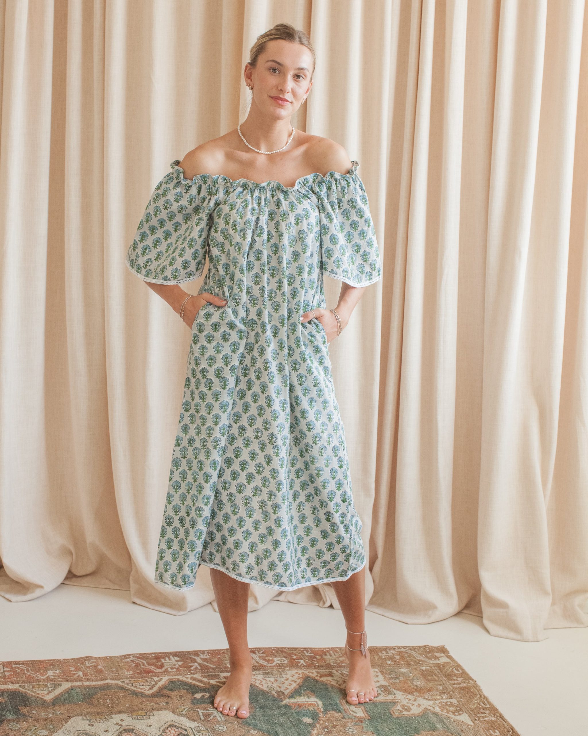 Designed by us. for you. Made by the same female owned workshop that creates our table top collection. each dress is crafted with hand block printed fabrics.