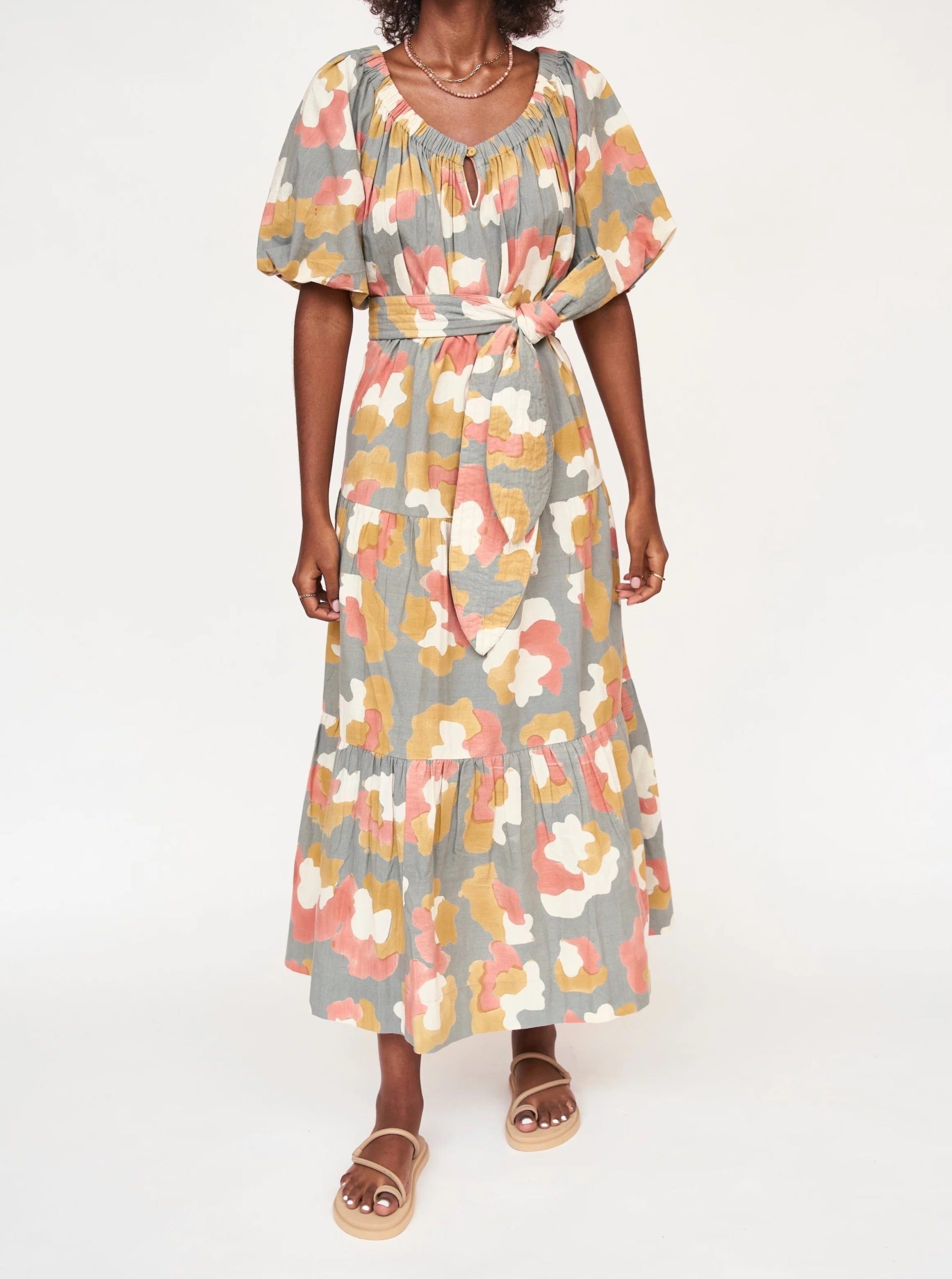 This best-selling silhouette is back in a fun new print for the season. Mirth’s versatile capri dress has an elastic neckline and can be worn on or off the shoulder. this version features a bubble sleeve with hidden elastic.