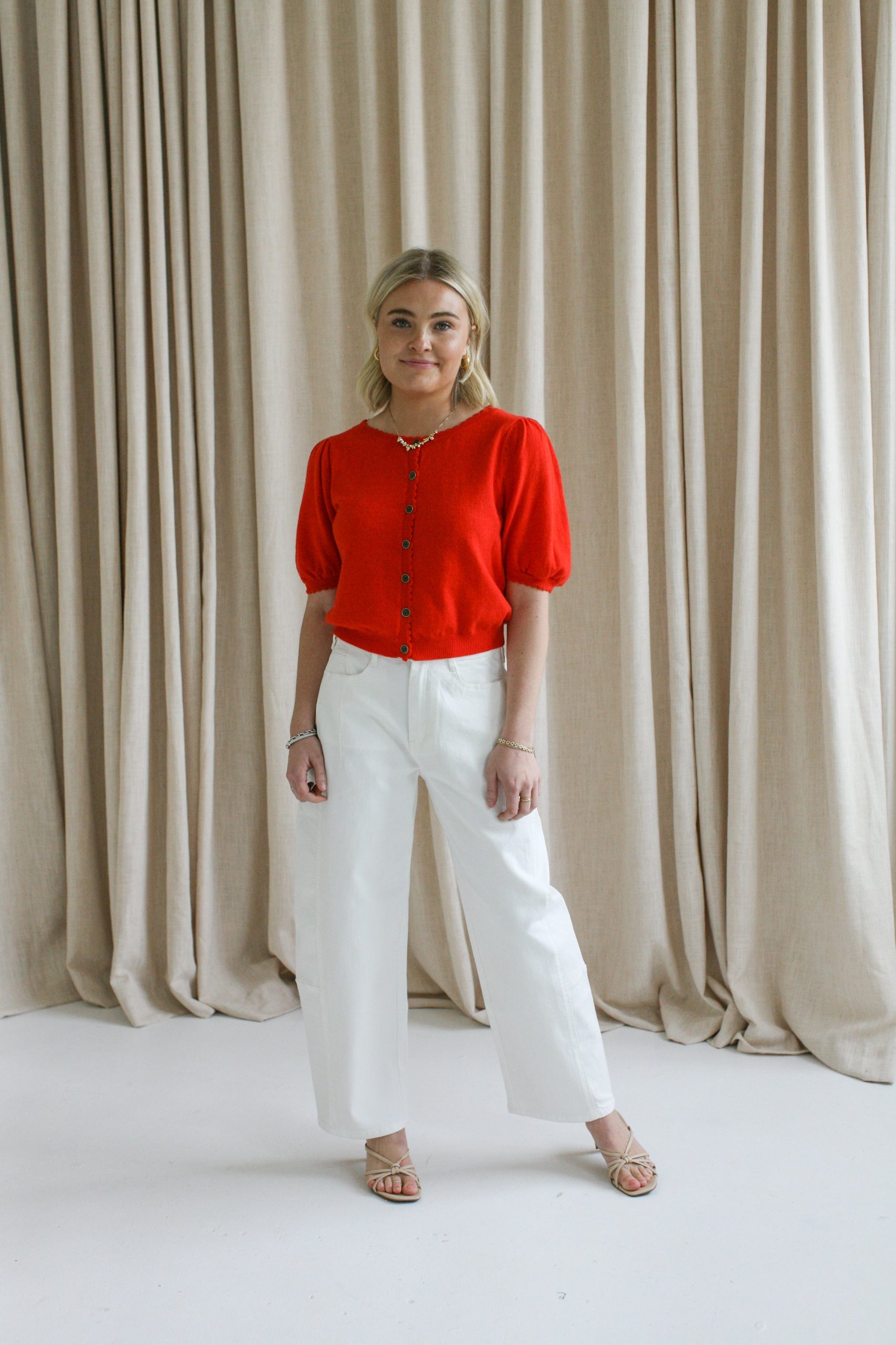 A twist on a spring staple. these barrel leg jeans in a classic white will go with all your favorite blouses and tees.